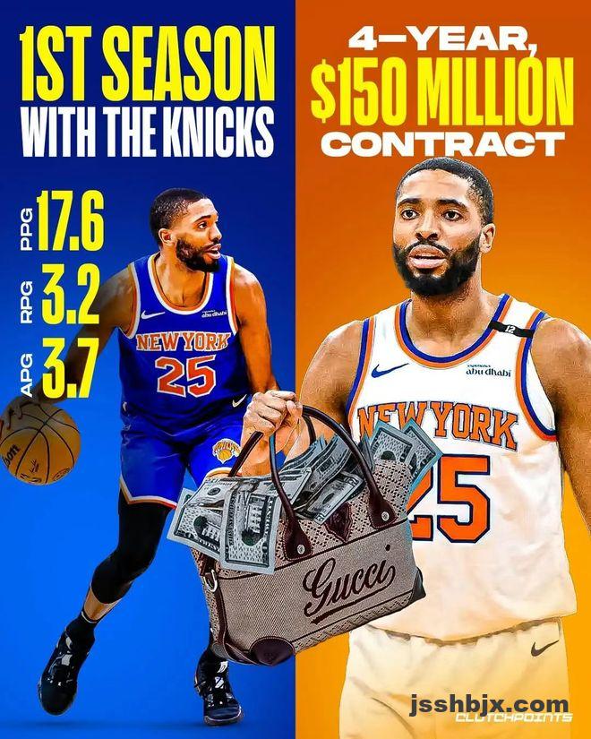 NBA休赛期又一笔重磅签约尘埃落定!据名记Shams Charania报道,米卡尔·布里奇斯与尼克斯达成4年1.5亿美元的提前续约协议。这份合同包含交易保证金,最后一年为球员选项。
