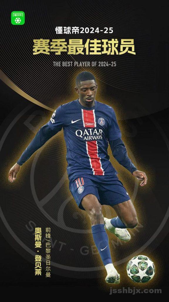 2024-25赛季懂球帝最佳球员揭晓,经过为期3天的投票,巴黎圣日耳曼前锋奥斯曼-登贝莱以巨大优势当选!