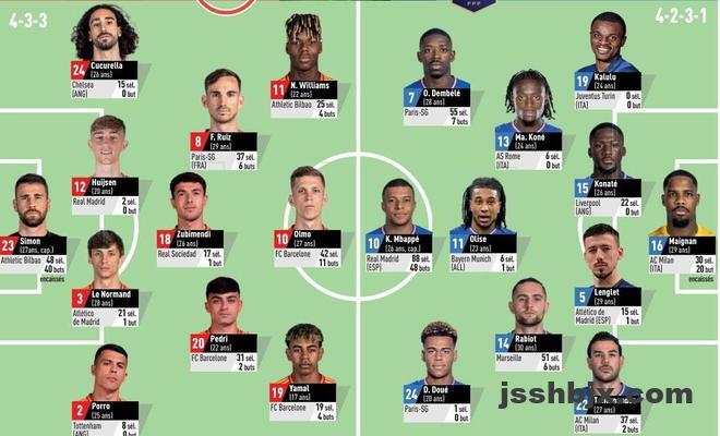 北京时间6月5日,法国媒体《队报》预测了欧洲国家联赛半决赛西班牙对阵法国的两队首发阵容,姆巴佩、佩德里、亚马尔、登贝莱等球员悉数在列。