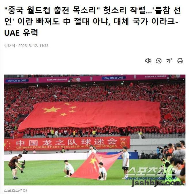 3月12日,韩国媒体《朝鲜体育》撰文表示,近期部分中国媒体和球迷关于“中国队有机会递补参加世界杯”的说法,被认为完全站不住脚。报道指出,即便伊朗最终退出世界杯,中国队也几乎没有任何机会顶替参赛。