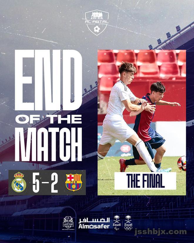 沙特当地时间6月4日,由沙特主办的第五届AI Abtal杯决赛落下帷幕,皇马U16梯队5-2战胜巴萨U16梯队赢得冠军。