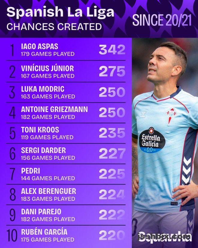 雷速体育10月12日讯 根据数据统计机构公布的西甲20/21赛季以来创造机会榜单,阿斯帕斯以342次高居榜首, […]