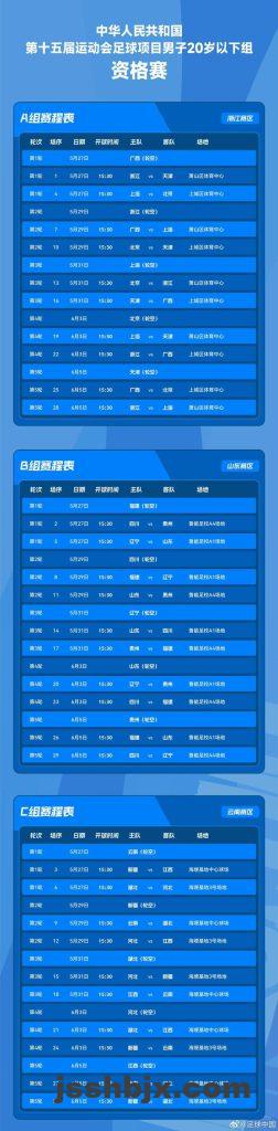 北京时间5月20日,中国足协官方公布了中华人民共和国第十五届全运会足球项目男子20岁以下组资格赛赛程表。