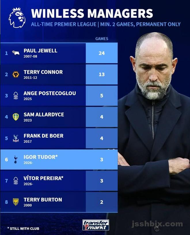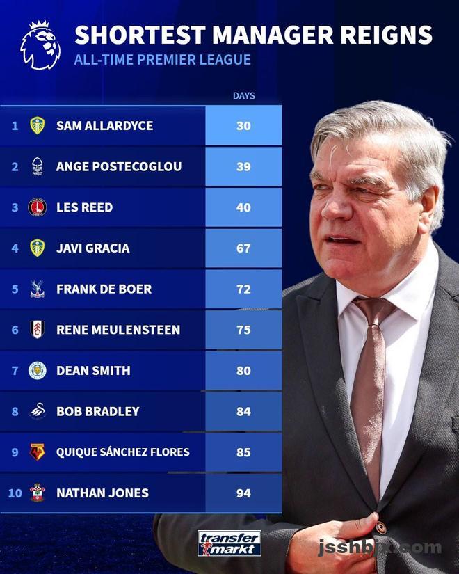 北京时间3月7日,在托特纳姆热刺新帅图多尔上任仅三周就被认为可能下课的情况下,德转统计出了英超历史最短命的10位主帅,2023年执教利兹联仅30天就下课的阿勒代斯排名第1,波斯特科格鲁第2。
