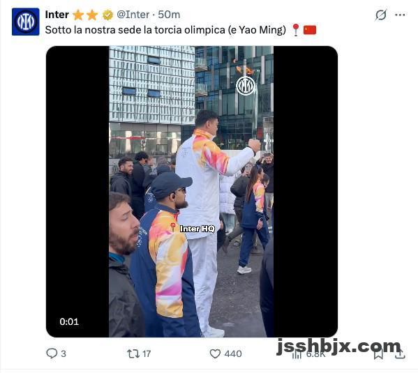 北京时间2月6日,国米官方晒出姚明传递奥运火炬的视频,并配文表示:在我们总部楼下的是奥林匹克火炬,还有姚明。”