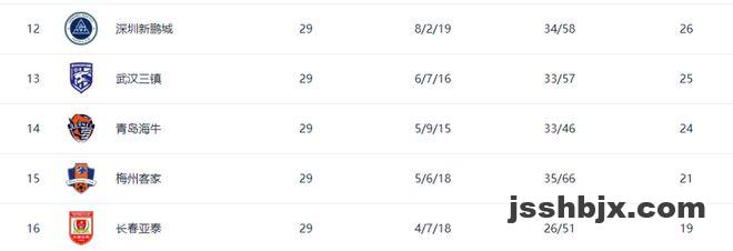 在第29轮,率先出战的深圳新鹏城客场0比1负于上海申花,长春亚泰主场0比4负于北京国安,梅州客家则2比2战平大连英博。