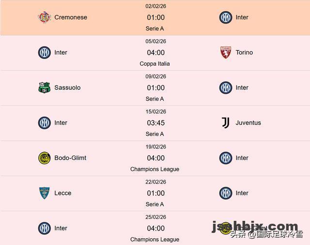 因为此后国米要对阵尤文,要去寒冷的挪威对阵博德闪耀,3月联赛里也将陆续对阵AC米兰、亚特兰大、罗马等队,如果欧冠晋级16强,届时赛程难度直线上升。