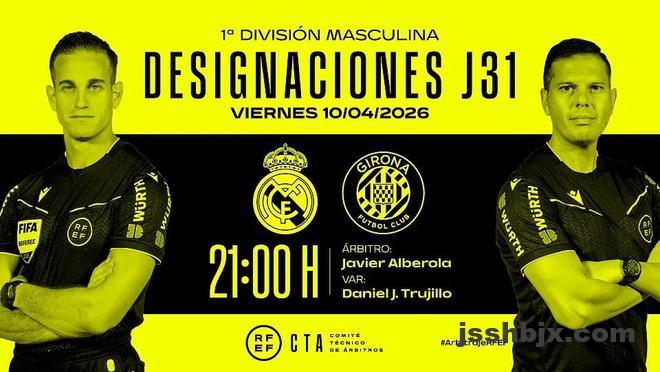 4月9日,西班牙足协官方公布了西甲第31轮周五比赛皇马vs赫罗纳的裁判安排,哈维尔-阿尔韦罗拉将担任主裁。