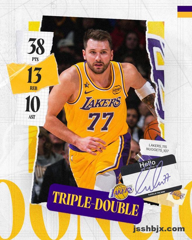 湖人队的东契奇得到38分、13个篮板和10次助攻,勒布朗得到19分、9个篮板和8次助攻,斯马特得到15分,海耶斯得到9分和5个篮板,八村塁得到9分和6个篮板。掘金队的穆雷得到28分和11次助攻,沃特森得到18分和5个篮板,戈登得到18分、4个篮板和5次助攻,琼斯得到16分和5个篮板,哈达威得到10分。
