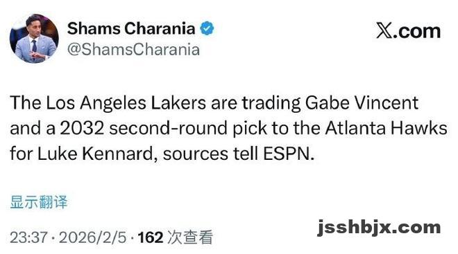 根据ESPN名记Shams报道,湖人与老鹰完成2换1交易,湖人将文森特和2032年次轮签送至老鹰,换回神射手肯纳德,有望提升湖人的外线投射能力。
