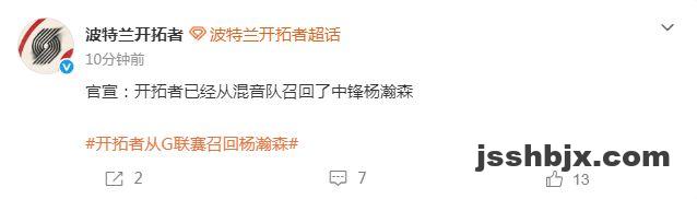 如今开拓者官宣将杨瀚森召回,他在3月24日主场10点对阵篮网的比赛,有望迎来复出登场的机会。