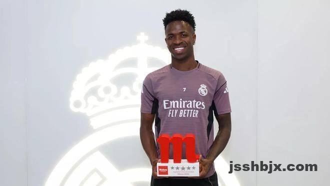 4月9日,维尼修斯领取了皇马队内3月最佳球员奖杯。