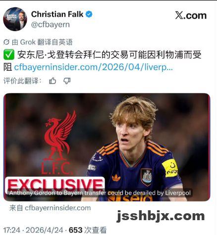 但现实的情况是,迪奥曼德80m+戈登80m,已经1.6亿+了,最近随队也一直说利物浦已经无意戈登,拜仁领跑、切尔西蠢蠢欲动。