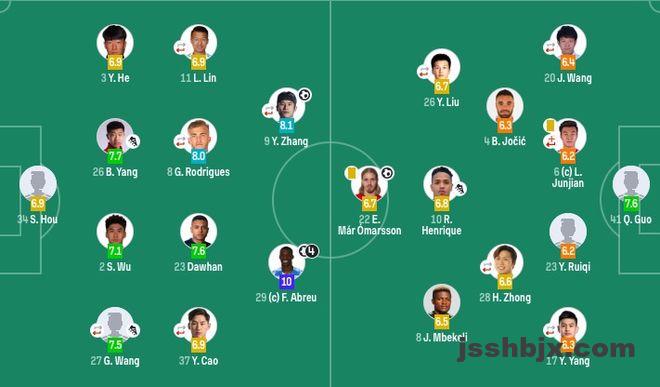 前卫:8-恩戈姆(F)、10-罗德里格(F)、26-刘云(46’21-魏祥鑫)