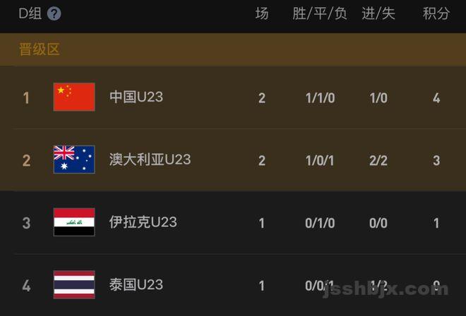 U23国足7分获头名,澳大利亚6分第2,两队携手出线,伊拉克4分,泰国0分,两队携手出局。