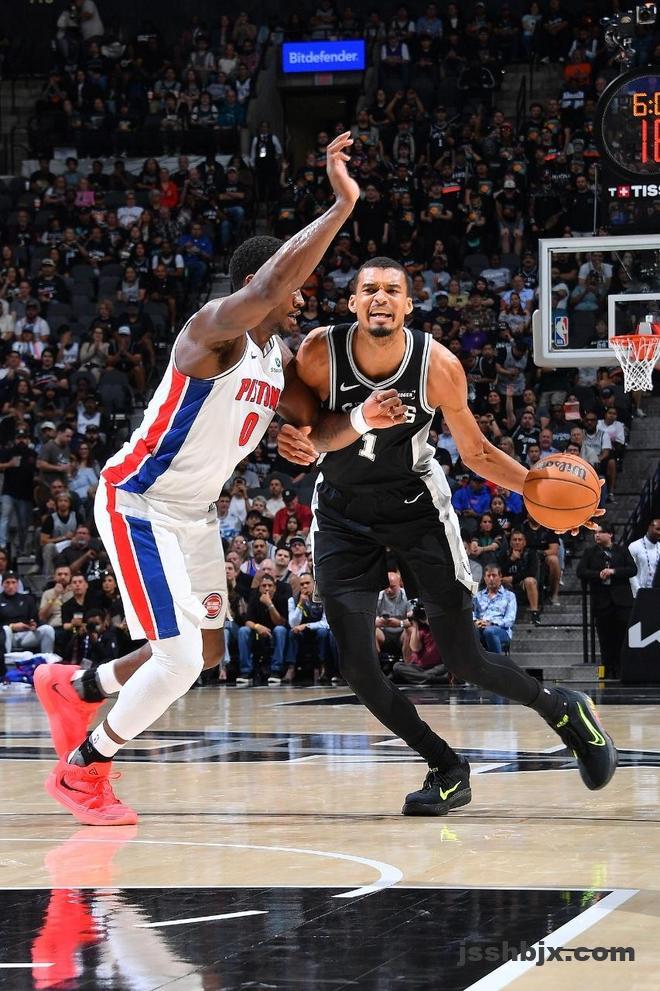 马刺上一场客场131-91大胜76人,活塞上一场客场109-113惜败骑士,本赛季首次交锋马刺客场114-103战胜活塞。本场马刺缺少巴恩斯、加西亚、普拉姆利,活塞缺少琼斯。首节开局马刺攻防压制10-2领先,活塞追到差4分,双方拉锯战缠斗。马刺在24-19后,双核率队打出14-2攻势扩大17分优势,斯图尔特两罚全中,首节结束马刺38-23领先活塞。首节马刺25中14,其中三分13中7,文班亚马6中4得到12+3+2帽与福克斯9中6命中3记三分得到16分;活塞被限制仅有29中7,其中三分8中1,坎宁安7中1仅得到2分2助攻与杜伦5中2仅得到4+4+2犯规。